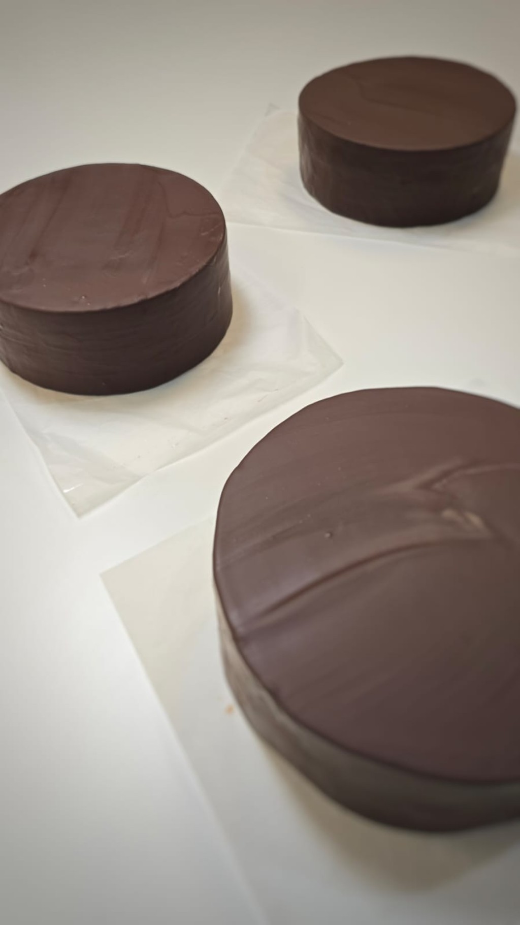 En formatos grandes conviene sellar bordes con una capita mínima de chocolate derretido antes de bañar o cubrir completamente. Eso lo refuerza y empareja.